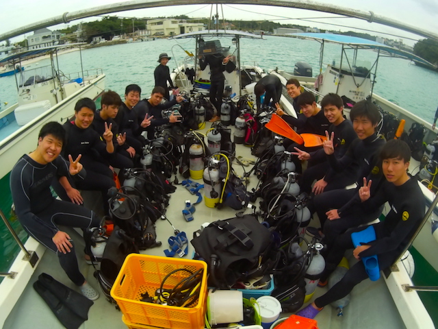 | 続いて、ダイビングチーム!! 大学生の団体様です! |
